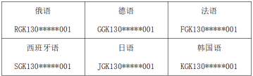 试测与正式比赛的账号和密码均为均为该语种英文首字母(大写)+GK+报名手机号