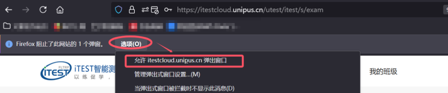【1】如使用火狐浏览器点击按钮无反应,请查看左上角提示,点击“选项”—“允许弹出窗口”。