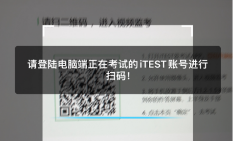 8、在手机端,同样使用公开赛指定账号及密码登录iTEST爱考试App,点击右上角“扫一扫”,进入视频监考。。