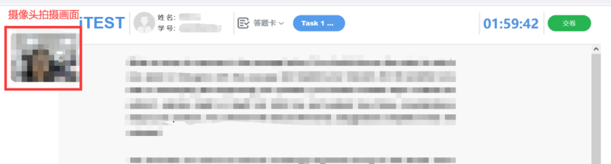 10、选手进入考试页面后,请先确认右上角倒计时显示正常,答题过程中摄像头全程开启、抓拍人像。答题期间,选手不允许查看其他页面,如切屏至其他页面,监考后台将收到异常提示,系统将记录选手的切屏次数,切屏5次系统自动交卷。